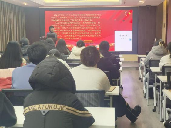 党课上,白晓霞同志重点围绕《论教育》中的《扎实推动教育强国建设》《大力弘扬教育家精神,为党育人为国育才》《坚持社会主义办学方向》等篇目,组织全体党员共同学习。教育是国之大计、党之大计,关乎着国家的未来和民族的希望。习近平总书记围绕教育发表一系列重要论述,科学回答了“培养什么人、怎样培养人、为谁培养人”的根本问题,认真学习这些重要论述,对于牢牢把握教育的政治属性、人民属性、战略属性,加快建设教育强国,为以中国式现代化全面推进强国建设、民族复兴伟业提供有力支撑具有重要意义。