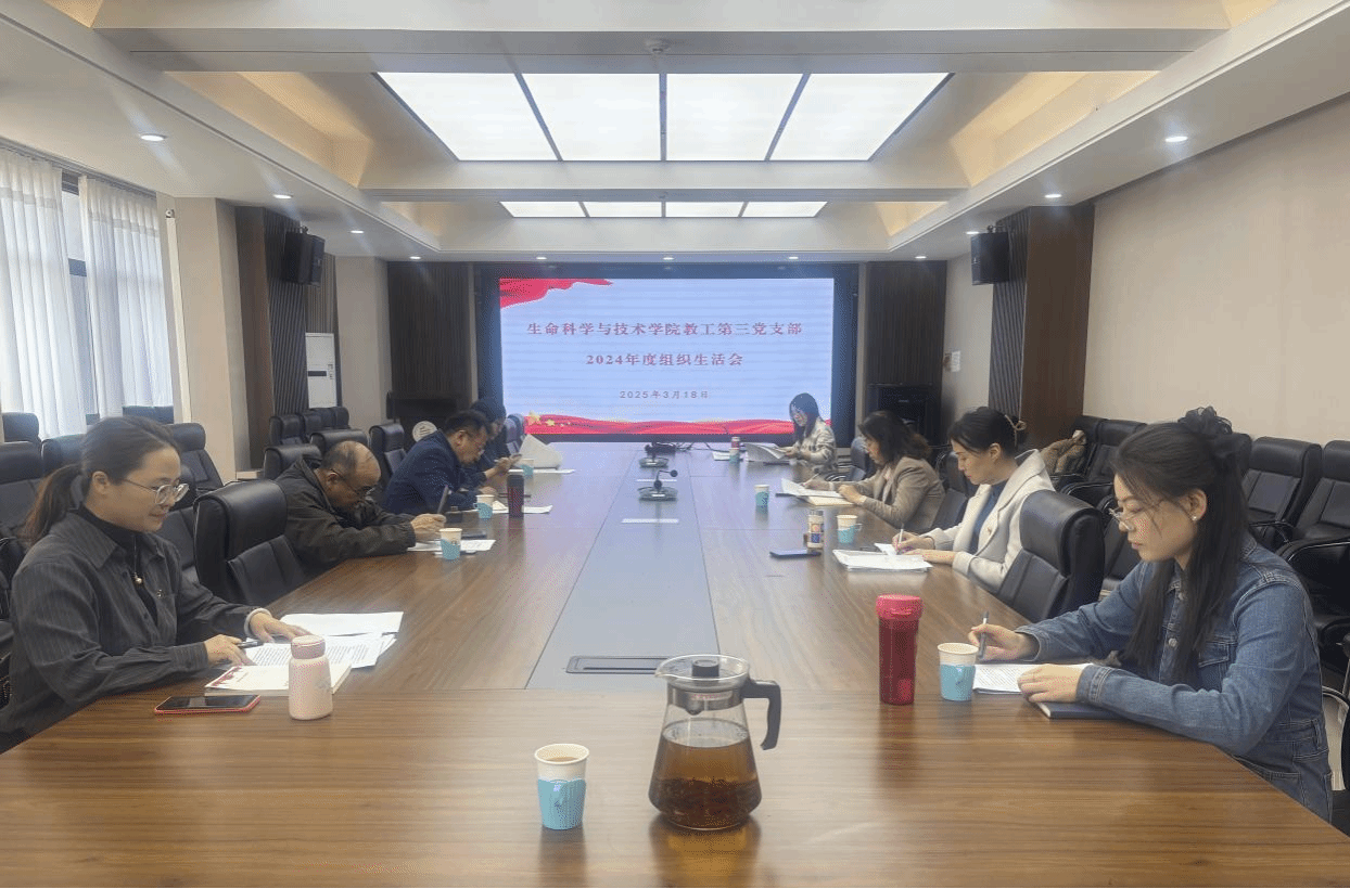 3月18日,支部召开2024年度组织生活会暨民主评议党员大会。学院党委副书记、院长红雨同志到会指导,教工第三党支部全体党员参加会议。会上,支部书记吴艳玲代表支部班子逐项查摆存在的问题,深刻剖析问题产生的根源,并提出具体整改措施。随后,支部党员依次进行个人对照检视剖析,紧密围绕会议主题及要求,结合自身工作实际,实事求是地开展批评与自我批评。红雨院长代表学院党委对本次组织生活会进行点评,并对本支部下一步建设提出殷切期望。民主评议环节,支部全体党员现场完成民主测评,以无记名投票方式评定出3名优秀党员、6名合格党员,且9张测评票均认为党支部班子评定为“好”。