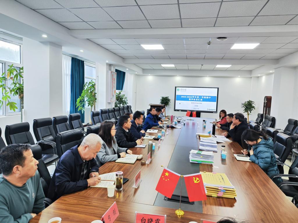 2023年11月9日下午,学校期中教学第四检查组来到我院进行检查。学院领导、系主任、教学督导组成员参加会议。教学副院长王铁娟代表学院对本学期本科教学进行了总体汇报,并对生物科学专业师范认证准备情况向检查组进行了详细汇报。检查组认真查阅了我院常规教学材料,对我院日常教学的规范性给予了充分肯定。