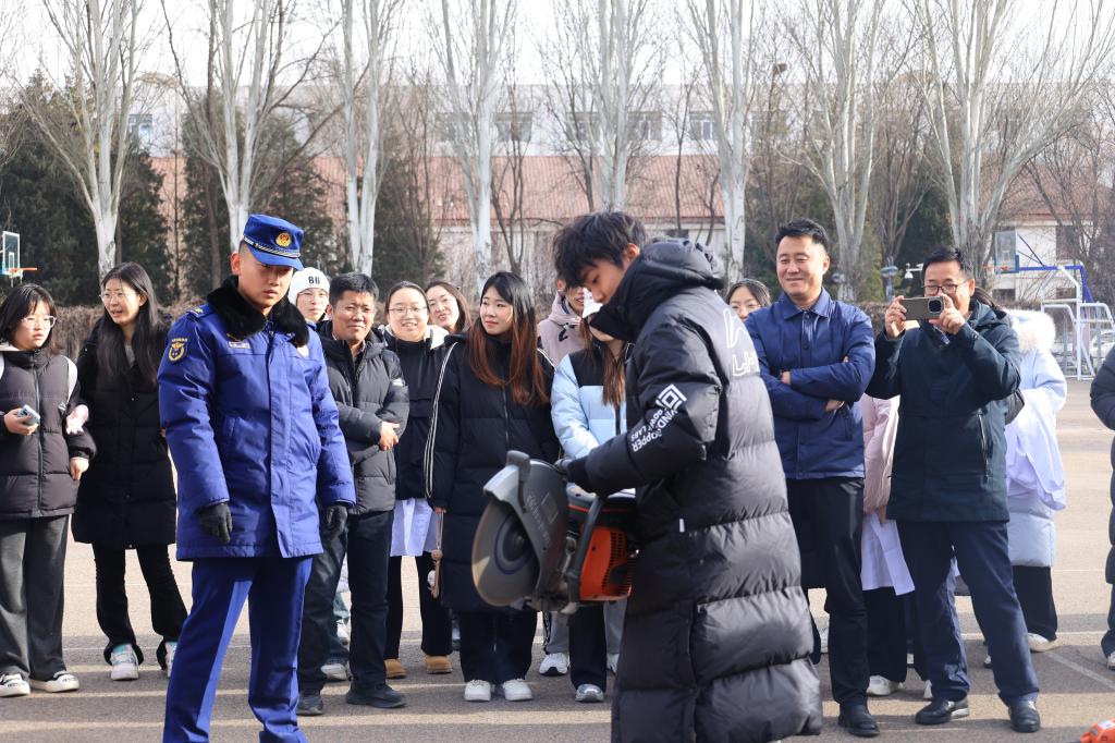 演练活动安排了实验室突发火灾疏散逃生、应急灭火两个环节。随着实验室警报声响起,滚滚浓烟冒出,师生们迅速进入紧急状态,按照预先制定的疏散路线,有条不紊地进行撤离。在疏散过程中,老师们沉着冷静地指挥,同学们迅速用湿毛巾捂住口鼻,弯腰低姿前行,整个疏散过程紧张有序,仅用了短短几分钟时间,所有师生都成功撤离到了安全区域。在应急灭火环节,在消防员的指导下,参与师生了解掌握了灭火器的种类、适用范围及操作步骤,还进行了灭火器灭火实操训练,掌握了初期火灾扑救要领。