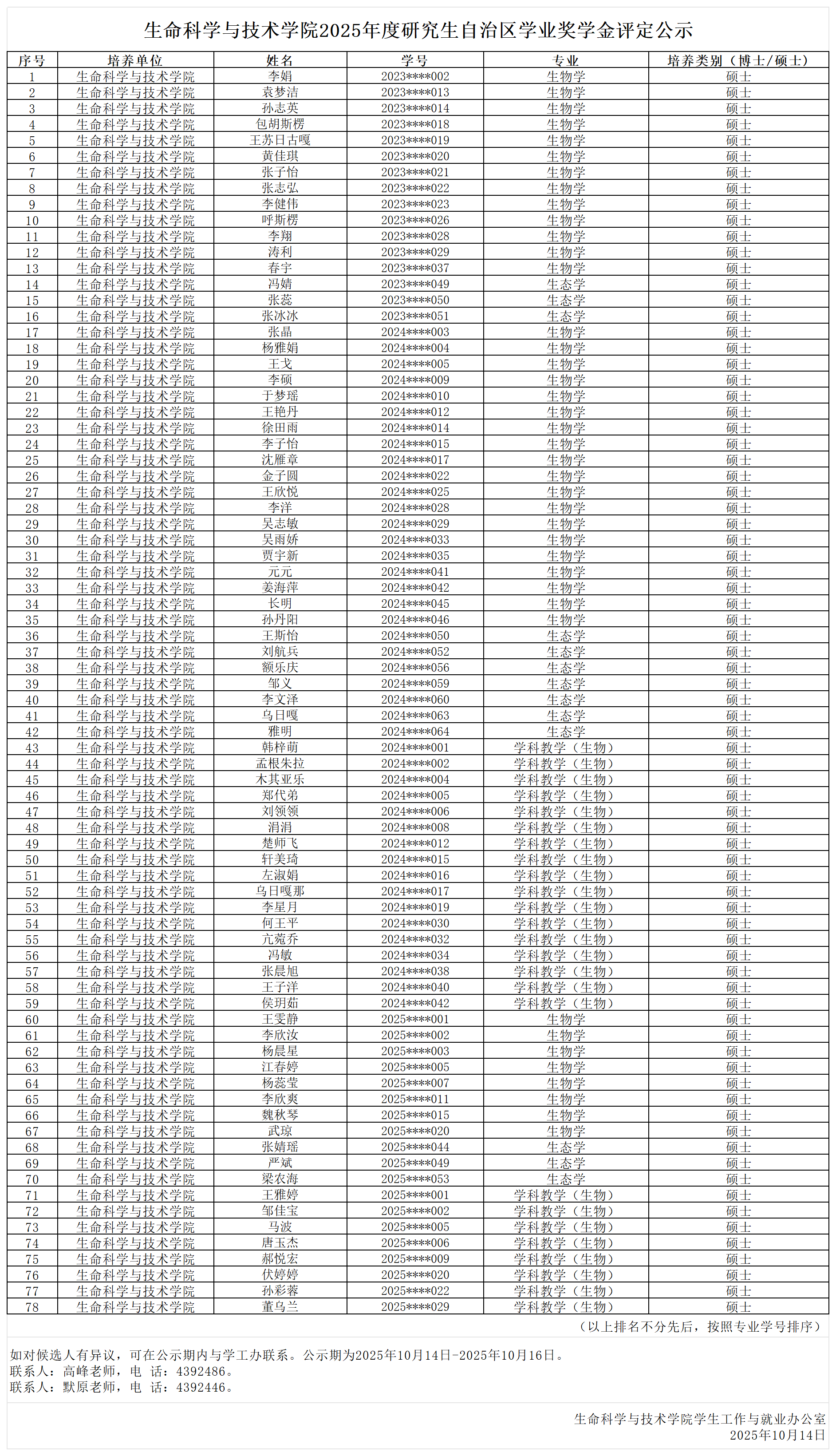 必赢国际437官网2025年度研究生自治区学业奖学金评定公示