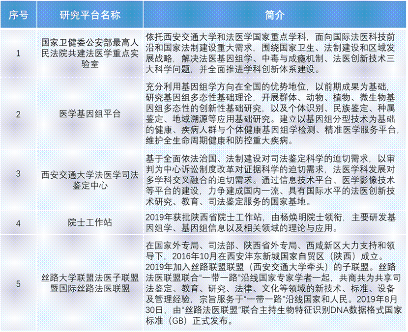 目前承接国家和教育部等政府各类研究项目,例如人类遗传资源保护、利用项目,也是国家人类遗传资源共享服务平台的重要组成部分之一,例如人类基因组计划、中华民族基因组多态现象、水稻基因组计划、朱鹮基因组计划等,例如首批合作、协作、协助的项目《西北区域自然人群队列研究》、《白芷药材全基因组测序》《法医昆虫基因组种类、发育、演替及进化研究》《吸烟对种植体周围微生物群落影响的宏基因组学研究》等在国内外有较高学术影响力。生物证据研究院面向世界科技前沿,面向国家重大需求,以基因组学、生物信息、智能生物证据、法医科学等研究领域,以自然科学和社会科学的交叉研究、综合研究为特色,以获取原始创新理论成果、自主知识产权核心技术与关键设备为主要研究目标,逐步实现国家双一流学科建设和创建世界一流学科的目标,全面推进学科创新体系建设。