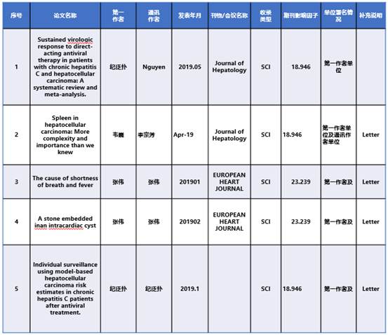 3、近五年发表论文情况汇总(发表于最具知名期刊杂志)。