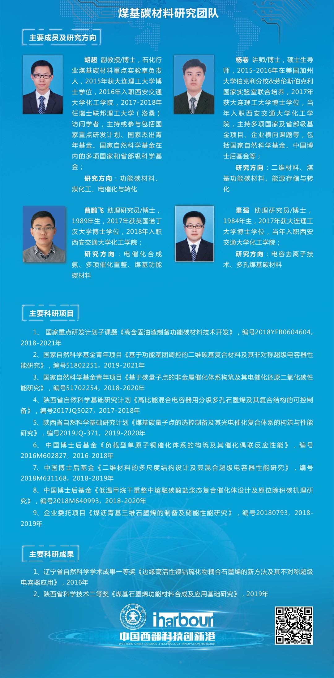 实验室研究方向为:煤基碳材料设计与制备、煤基多孔碳吸附与分离、碳基能源催化与转化、碳基能源材料与器件。 现有固定人员31名,其中国家杰出青年基金获得者2名。