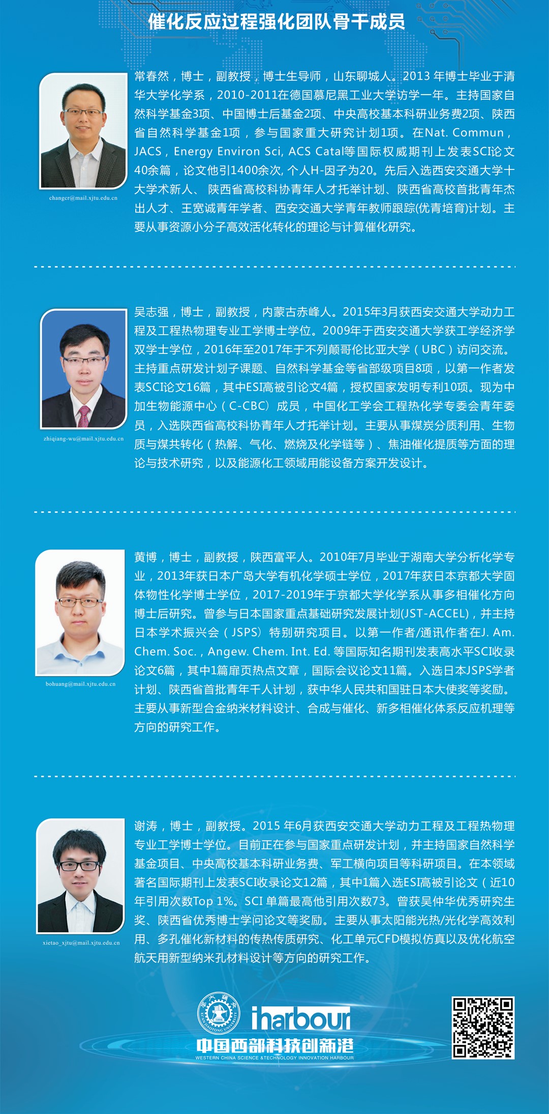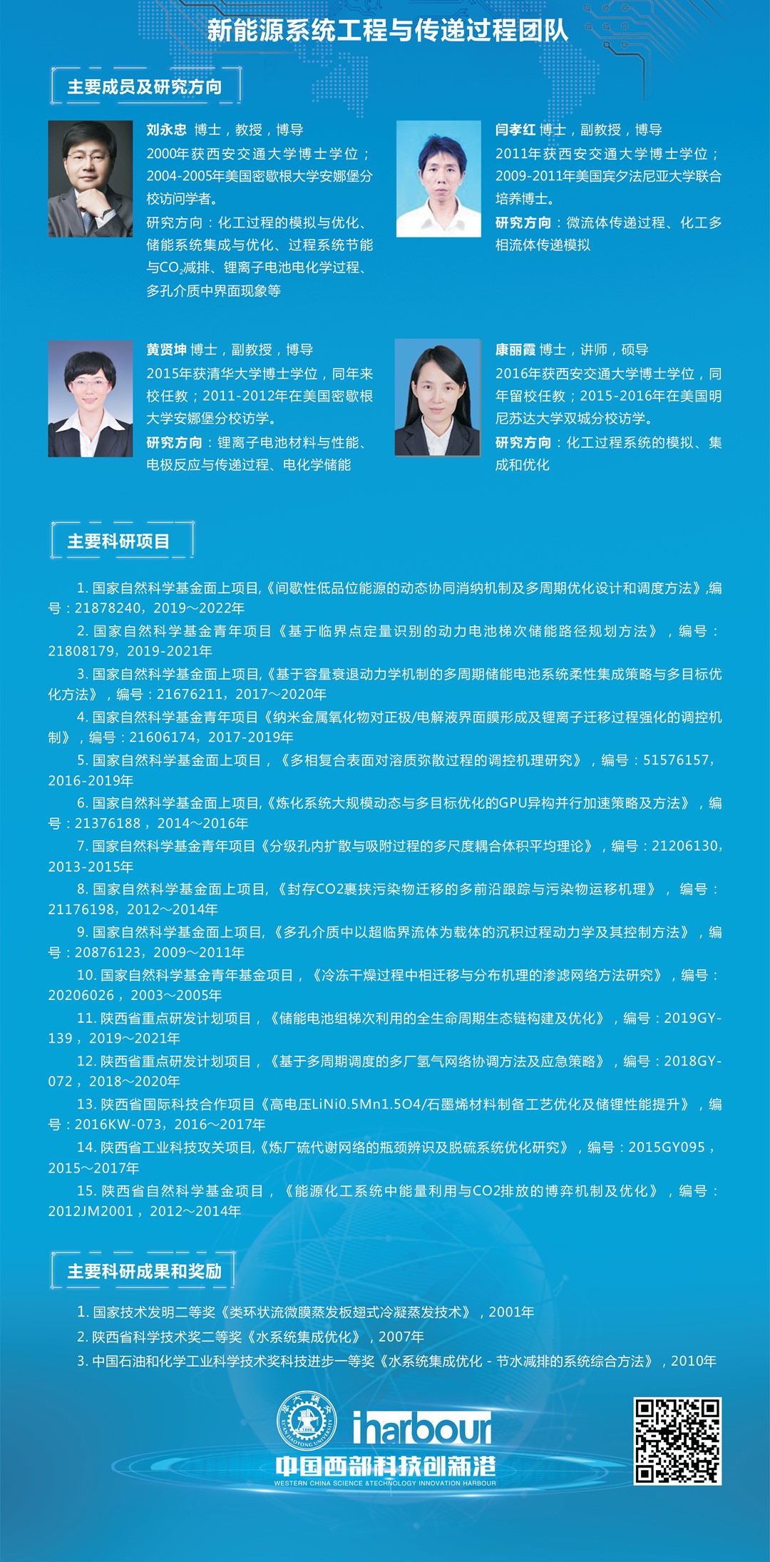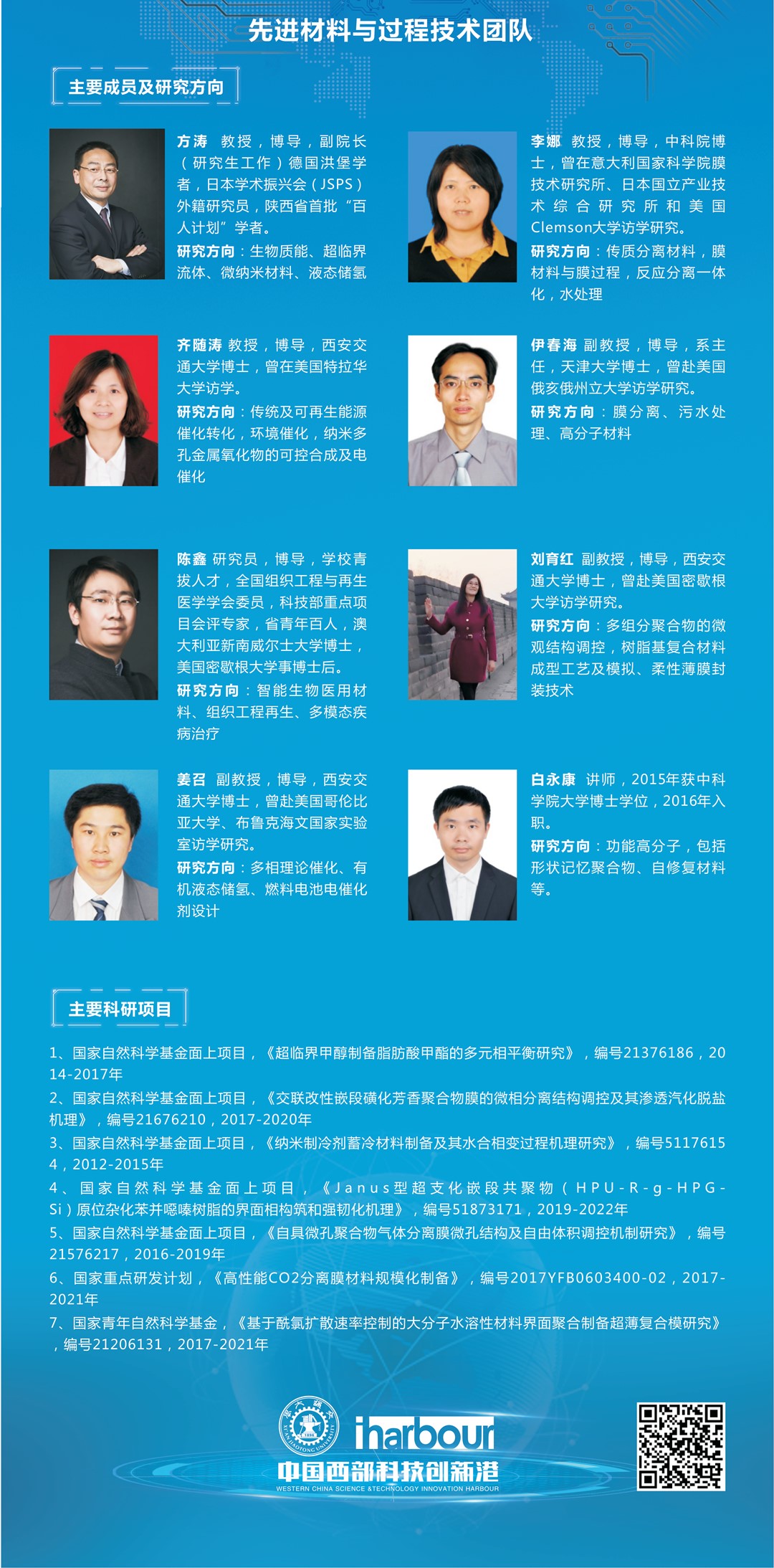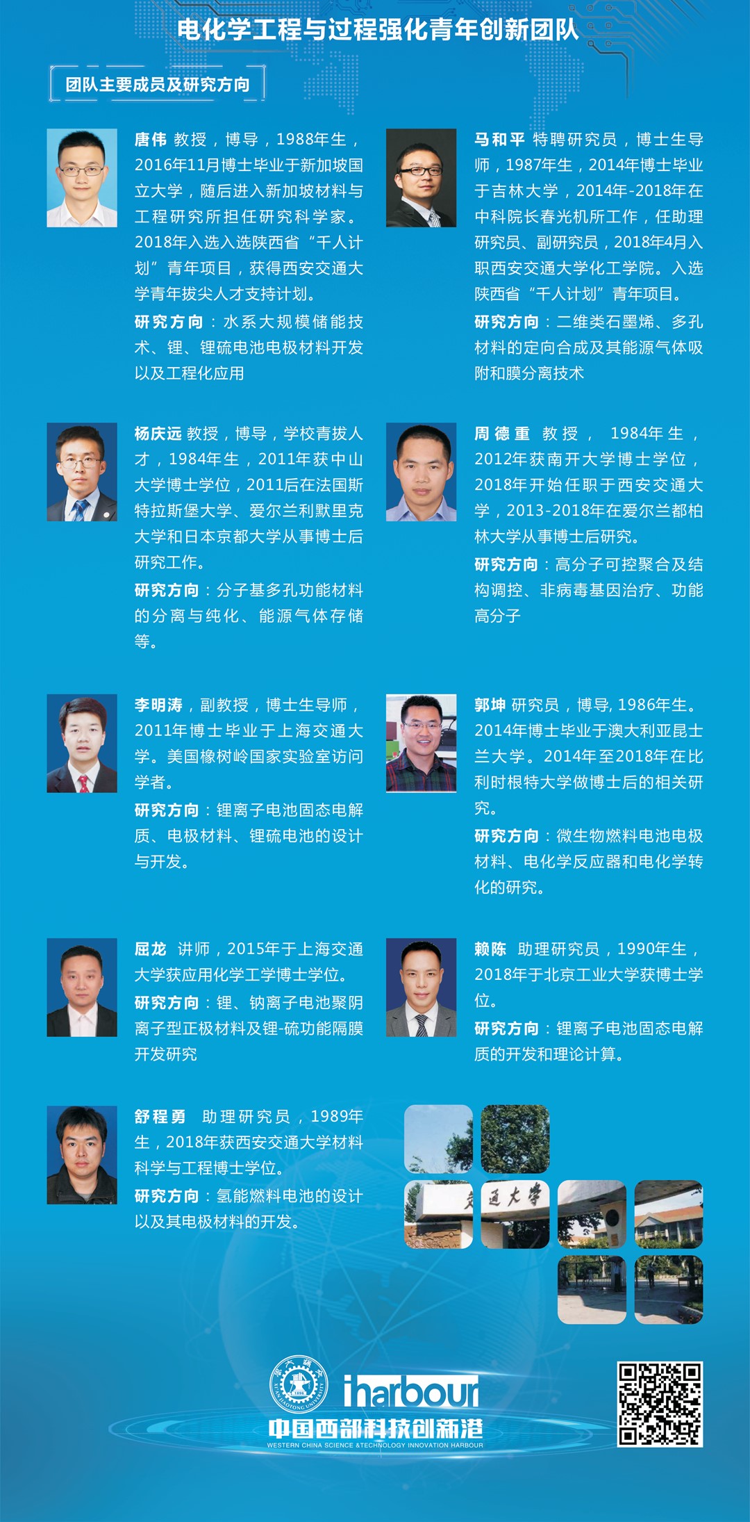 团队现在有教授2人,特聘研究员1名,副教授4人,青年教师5人。团队自形成之初,就始终高度重视青年人才的培养。近些年,团队成员中涌现出“王宽诚青年学者”2人,“陕西省青年科技新星”1人,“陕西省青年人才托举计划”2人,陕西省普通高校青年杰出人才 ”1人,“西安交大十学术新人 ”2人。